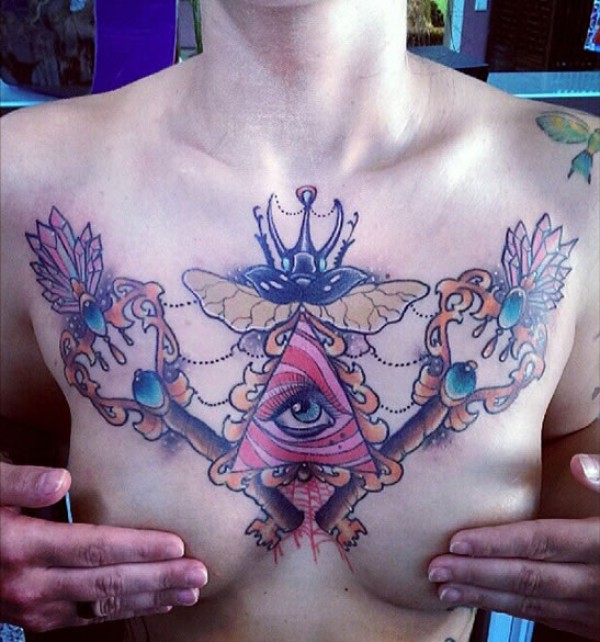 美女胸部中心的上帝之眼纹身图案彩色的上帝之_胸部纹身图案大全_纹身图吧