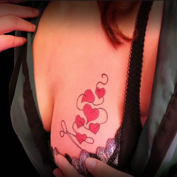 堆砌在美女胸部的桃心图案纹身好胸好纹身_胸部纹身图案大全_纹身图吧