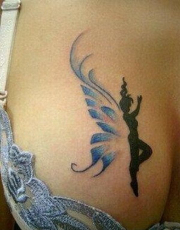 停留在美女酥胸上的精灵纹身图案美乳是蓝色翅_胸部纹身图案大全_纹身图吧
