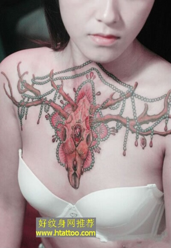 胸前漂亮潮流的美女纹身图案_胸部纹身图案大全_纹身图吧