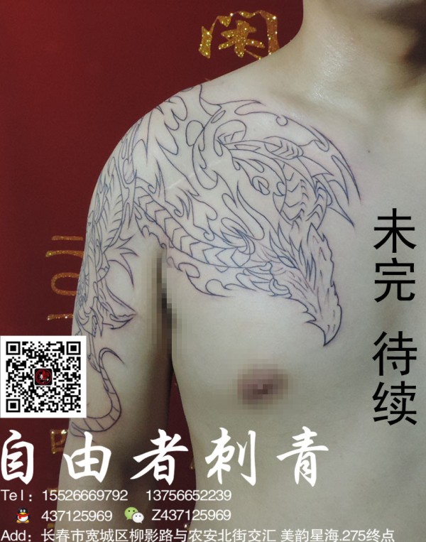 胸部半甲纹身未完成之前的割线效果图胸部半甲_胸部纹身图案大全_纹身图吧