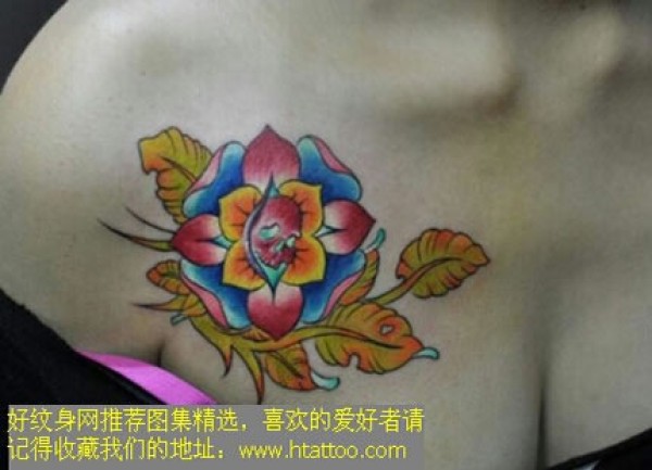 美女胸部的骷髅花图案彩色纹身纹身图案中的花_胸部纹身图案大全_纹身图吧