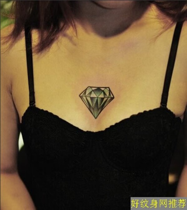 美女胸部上闪耀的钻石纹身图案钻石图案素描纹_胸部纹身图案大全_纹身图吧