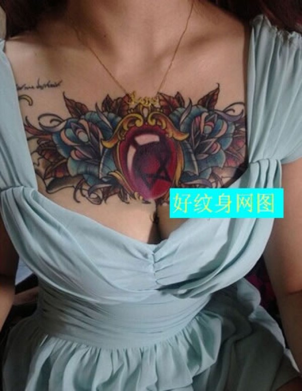胸前漂亮潮流的美女纹身图案_胸部纹身图案大全_纹身图吧