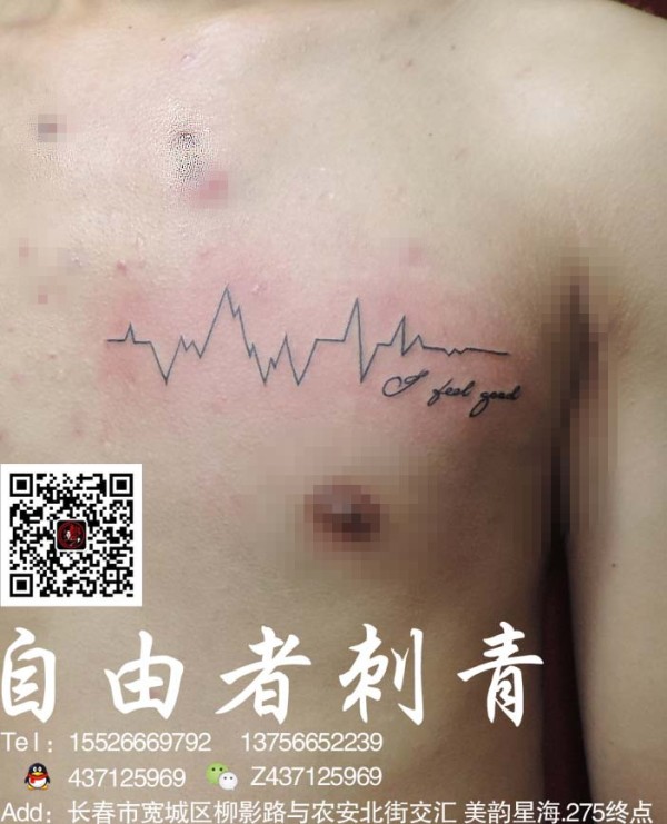 心脏部位曲折的心电图纹身图案大全心电图加字_胸部纹身图案大全_纹身图吧