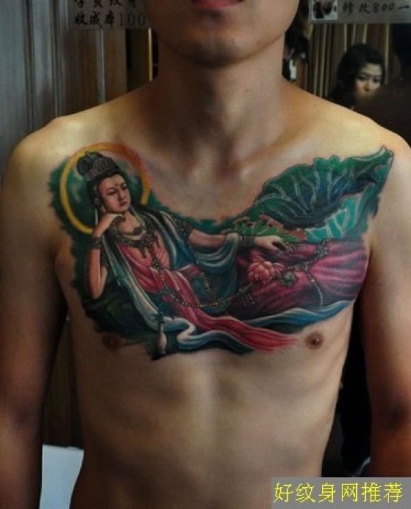 男士胸部大慈大悲的观音娘娘纹身图案卧躺的彩_胸部纹身图案大全_纹身图吧