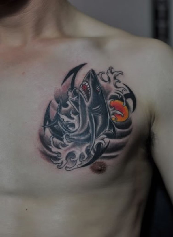 海洋猛兽,大鲨鱼纹身图案大全跳出水面的鲨鱼_胸部纹身图案大全_纹身图吧
