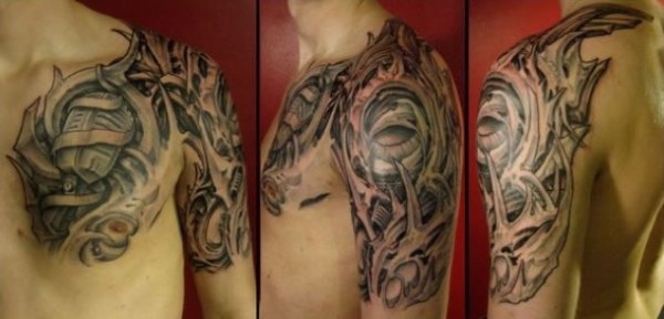 胸部过肩纹身图案不同视角效果图过肩纹身图案_胸部纹身图案大全_纹身图吧