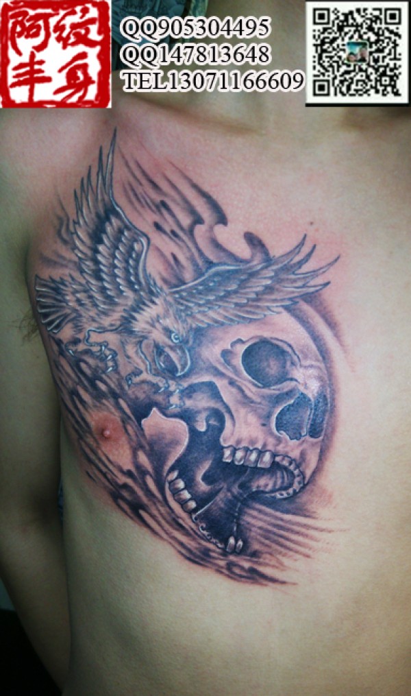 男士胸部的骷髅头加鹰组合纹身图案每一款组合_胸部纹身图案大全_纹身图吧