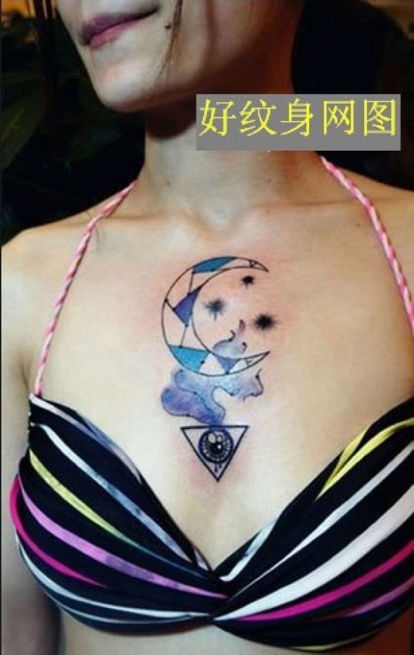 胸部一轮弯弯的月亮纹身图腾美女胸部的月亮图_胸部纹身图案大全_纹身图吧