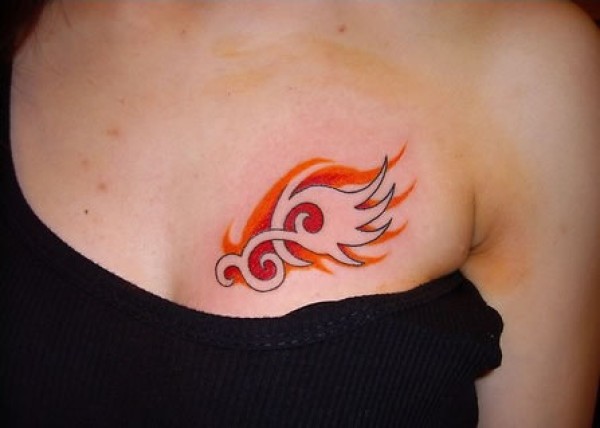 胸部熊熊燃烧的火焰图案纹身大全美女胸部飘摇_胸部纹身图案大全_纹身图吧