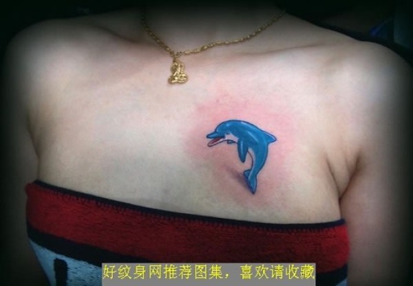 美女胸部超级可爱的海豚纹身图案美女胸口上蓝_胸部纹身图案大全_纹身图吧