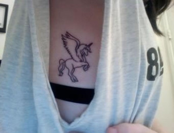 美女胸部小图案独角兽图腾纹身线条勾勒的独角_胸部纹身图案大全_纹身图吧