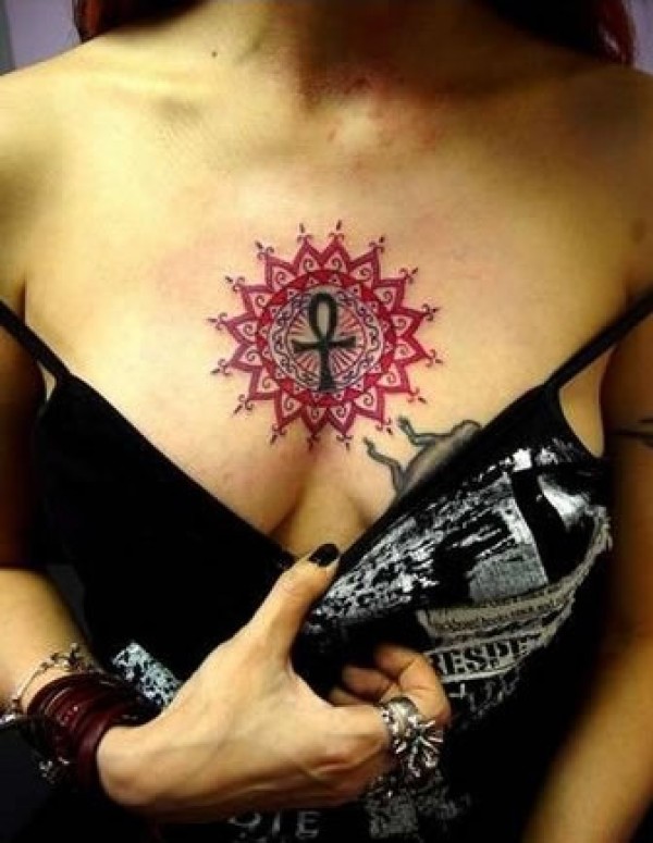 胸部各种圆盘形状的图腾纹身图片感觉很像向日_胸部纹身图案大全_纹身图吧
