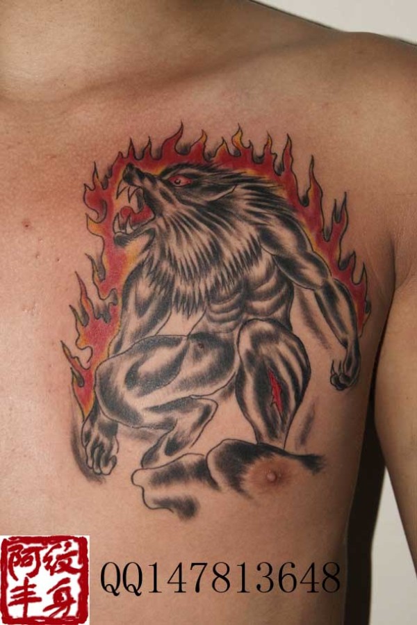 男人的最爱纹身,火狼纹身图案胸部超酷的烈火_胸部纹身图案大全_纹身图吧