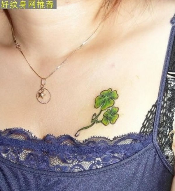 淑女胸部小清新的四叶草纹身图案非常具有大自_胸部纹身图案大全_纹身图吧