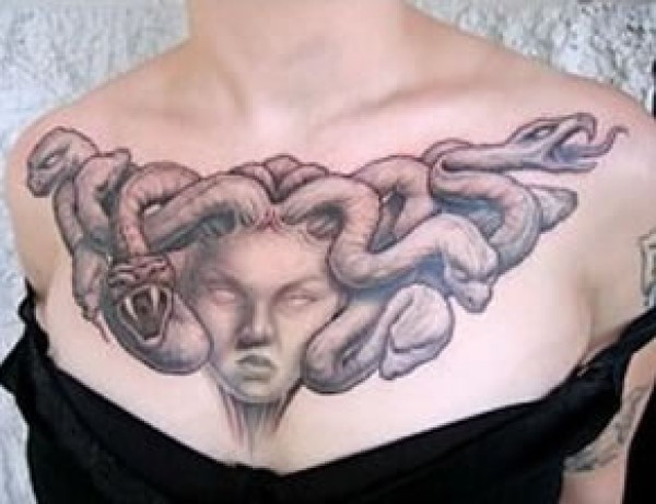 胸部素色的蛇妖女美杜莎纹身图案大全美女前胸_胸部纹身图案大全_纹身图吧