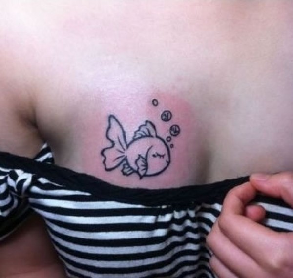 美女胸部各种小图案的鱼纹身图片吐着泡泡的单_胸部纹身图案大全_纹身图吧