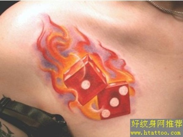 胸部烈焰腾腾的色子纹身图案美女胸部带熊熊火_胸部纹身图案大全_纹身图吧
