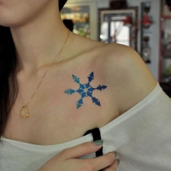 美女胸前洁雅的雪花纹身图案美女胸部蓝色的雪_胸部纹身图案大全_纹身图吧