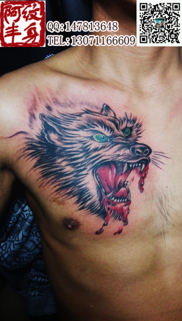 男士胸前残忍的血狼头纹身图片阿丰纹身馆推荐_胸部纹身图案大全_纹身图吧