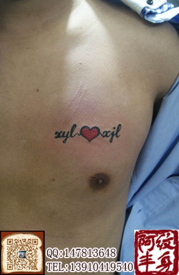 胸部加红色爱心的字母纹身图红色的爱心图案,_胸部纹身图案大全_纹身图吧