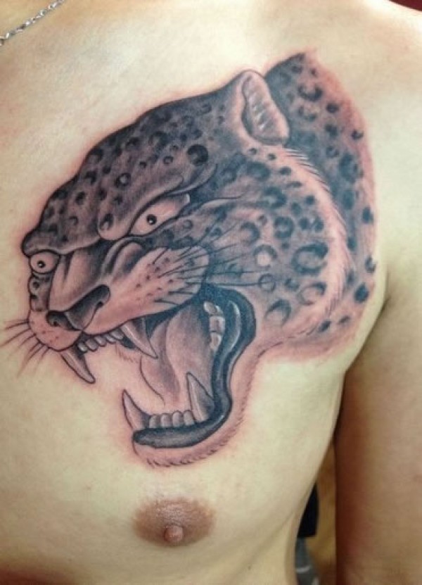 男士胸部盛气凌人的豹子纹身图案目露凶光的咆_胸部纹身图案大全_纹身图吧