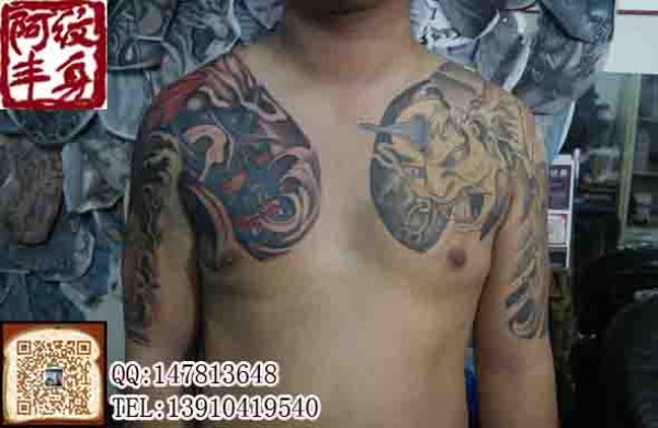 胸部邪恶主题双甲纹身图案胸部魔头图案双甲纹_胸部纹身图案大全_纹身图吧