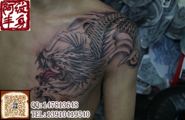 胸前过肩鳌鱼纹身图案过肩及胸的鳌鱼图案_胸部纹身图案大全_纹身图吧