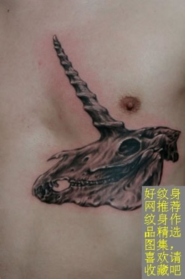 胸部独角兽头骨图案纹身很神秘的独角兽头骨图_胸部纹身图案大全_纹身图吧
