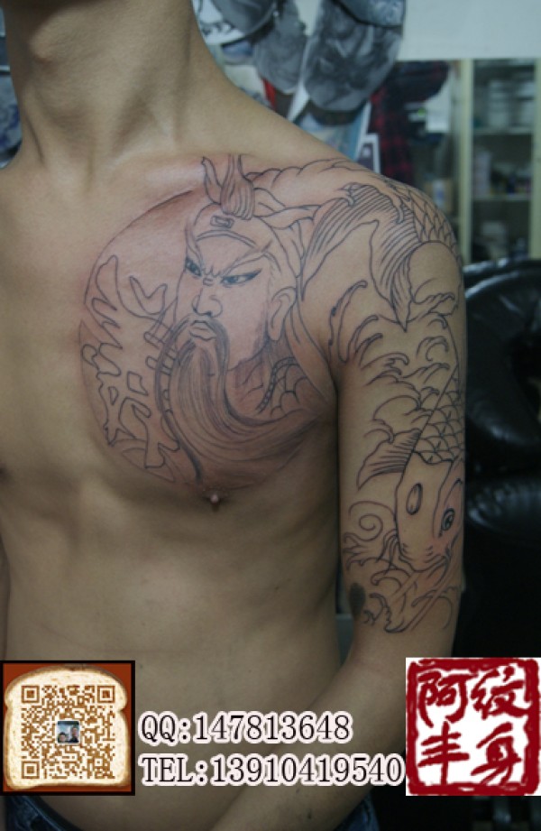 胸部还没有上色半甲纹身割线图关二爷纹身图案_胸部纹身图案大全_纹身图吧