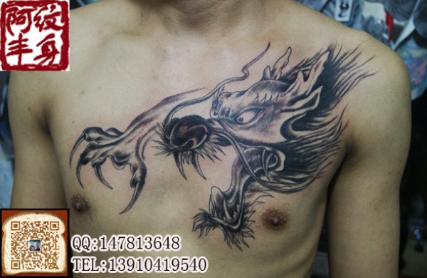 胸前刚猛的利爪龙头纹身图案纹身图案中龙头的_胸部纹身图案大全_纹身图吧