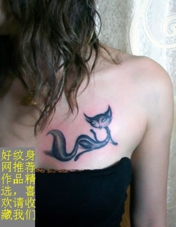 女生胸部妖娆的狐狸纹身图案女生胸部黑色的狐_胸部纹身图案大全_纹身图吧