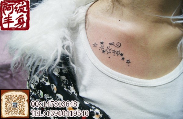 女士胸前锁骨处的繁星纹身图案胸前星星小图案_胸部纹身图案大全_纹身图吧