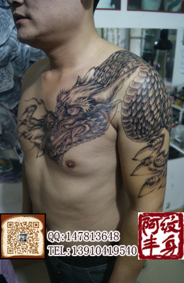 很牛的过后背素色龙纹身图案缠绕躯体的纹身图_胸部纹身图案大全_纹身图吧