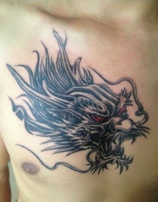 男士胸部酷毙了的龙头纹身图胸部银色龙头图案_胸部纹身图案大全_纹身图吧