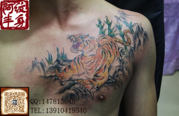 男生胸部彩绘的下山虎纹身图案阿丰纹身馆最新_胸部纹身图案大全_纹身图吧