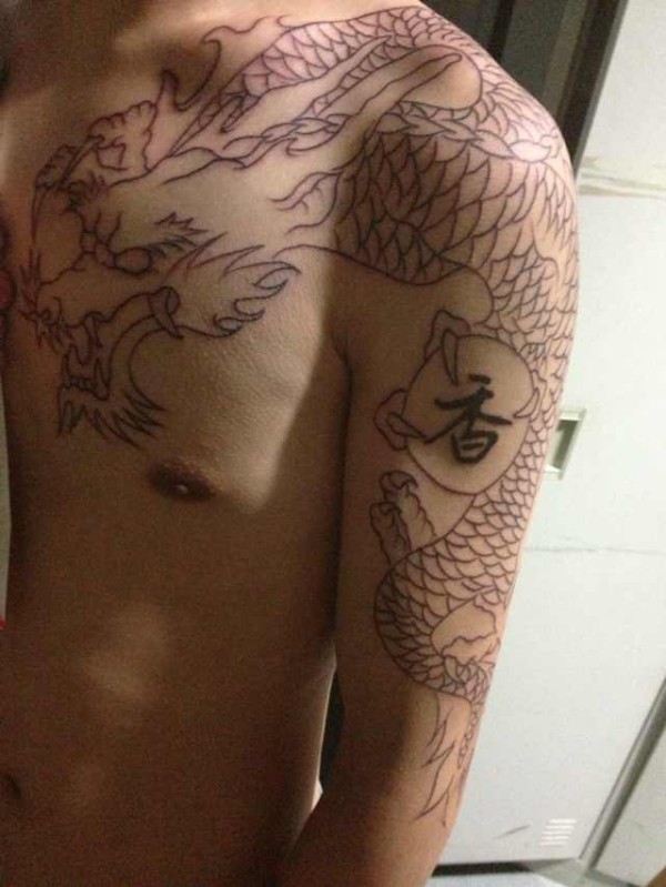 简化过肩龙纹身图案作品简笔画过肩龙纹身图,_胸部纹身图案大全_纹身图吧