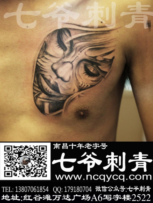 胸部人物头像纹身图案七爷刺青推荐的胸部人像_胸部纹身图案大全_纹身图吧