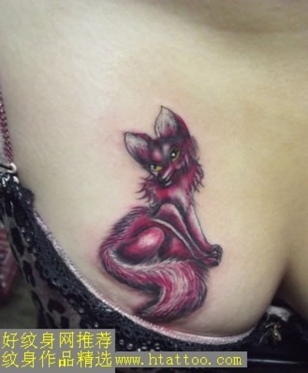 女生胸部火狐纹身图案女生胸部酒红色狐狸图案_胸部纹身图案大全_纹身图吧
