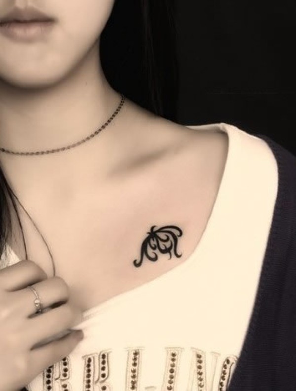 女生胸部黑色的花蕾图腾纹身细腻肌肤上的花蕾_胸部纹身图案大全_纹身图吧