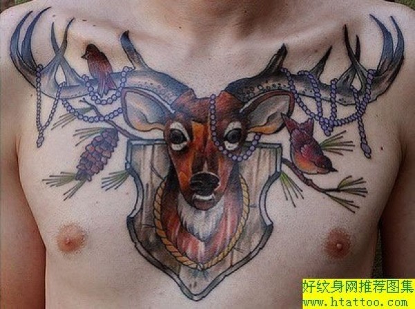 胸部不同位置的梅花鹿纹身对比图胸部居中的大_胸部纹身图案大全_纹身图吧