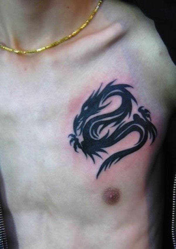男士胸部黑色的龙图腾纹身刚出炉还热乎乎的图_胸部纹身图案大全_纹身图吧