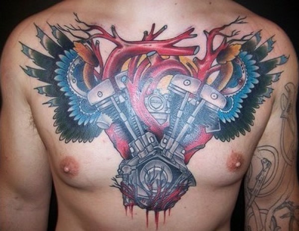 胸部扇形纹身图案推荐彩绘的各种机械图案加翅_胸部纹身图案大全_纹身图吧