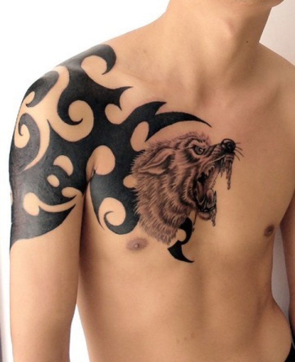 男人胸前超酷凶狠的狼头纹身图案_胸部纹身图案大全_纹身图吧