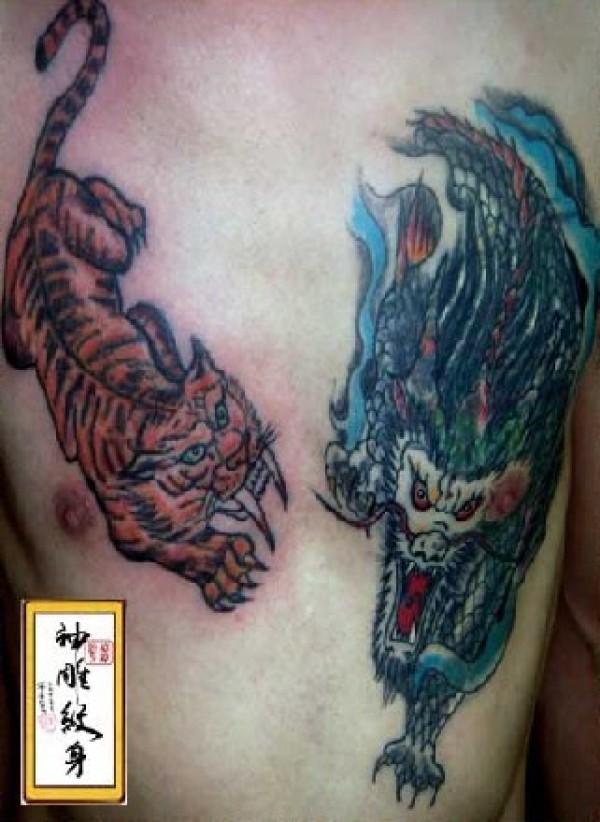 胸部龙虎斗纹身图案在胸部用纹身来表达龙争虎_胸部纹身图案大全_纹身图吧