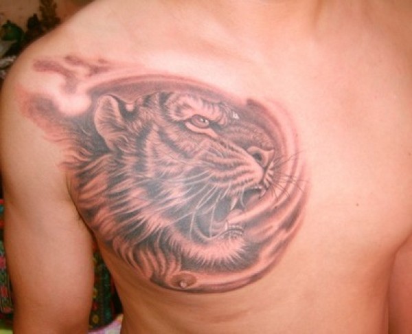 胸部咆哮的虎王纹身低沉的咆哮是虎王进攻的信_胸部纹身图案大全_纹身图吧