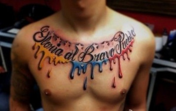 胸部滴落形式的字母纹身欲滴的情景使得字母好_胸部纹身图案大全_纹身图吧