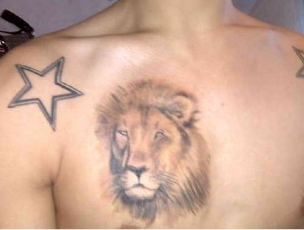 胸部朦胧的雄狮头像纹身图虽然纹身看起来很朦_胸部纹身图案大全_纹身图吧
