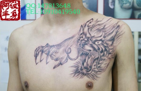 犀利的胸前龙纹身图片纯正的男子汉纹身哦,够_胸部纹身图案大全_纹身图吧